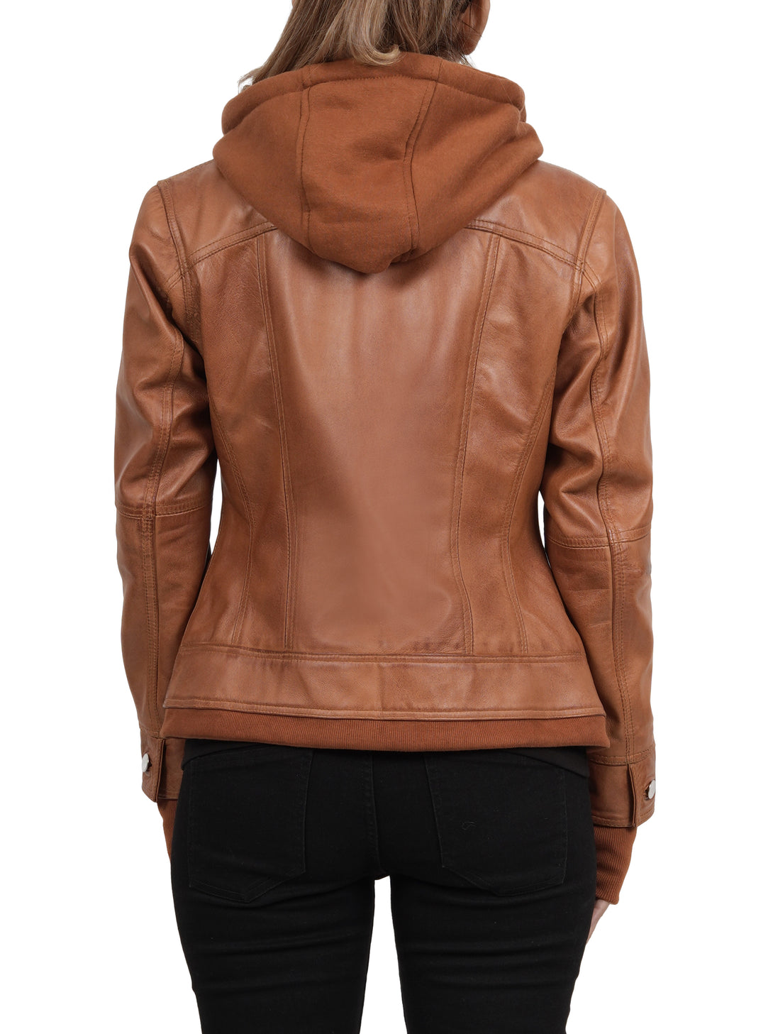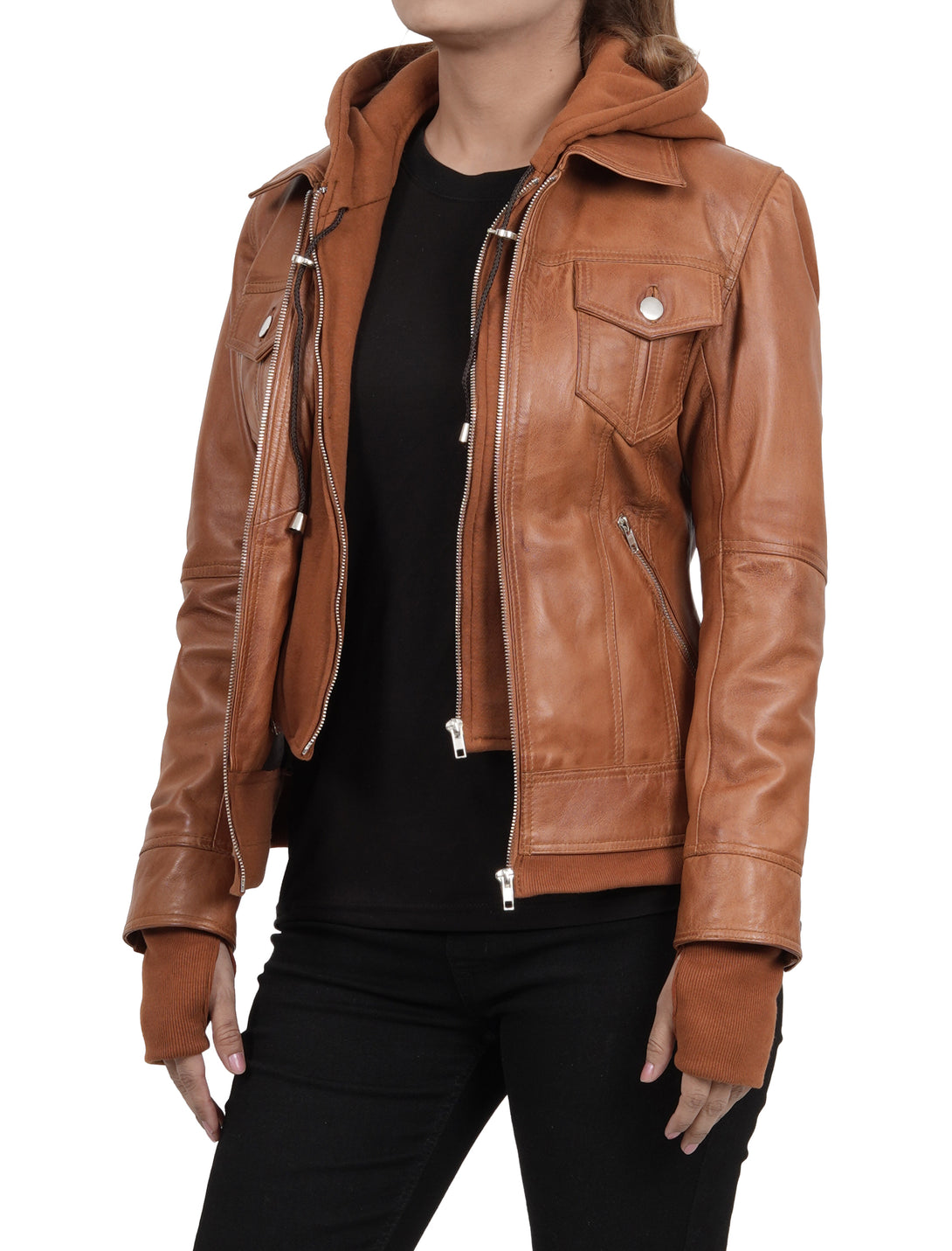 Tralee Damen – Hellbraune, gewachste Bomberjacke aus Leder mit abnehmbarer Kapuze
